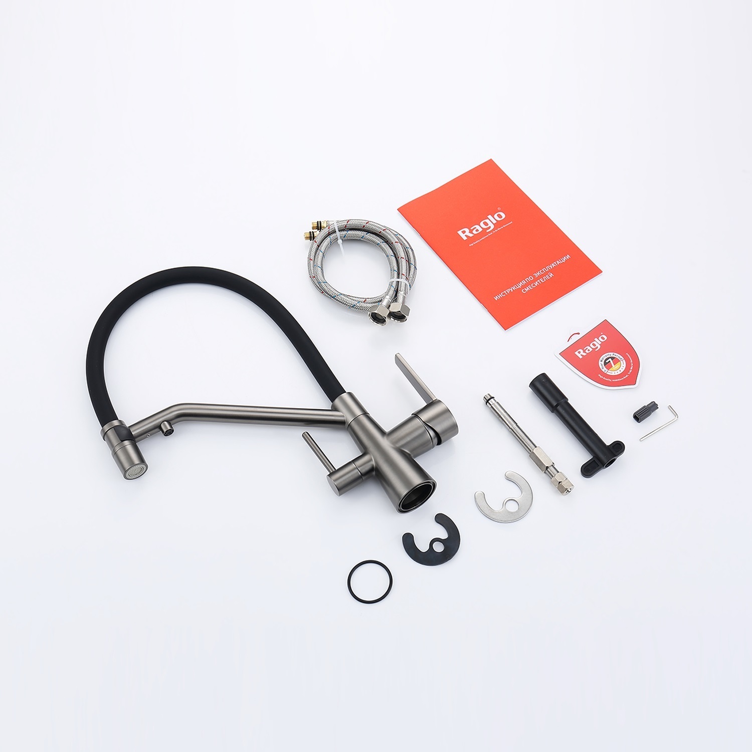 Смеситель для кухни Raglo R80.62.09 с подключением фильтра и гибким изливом, материал латунь, цвет графит.
