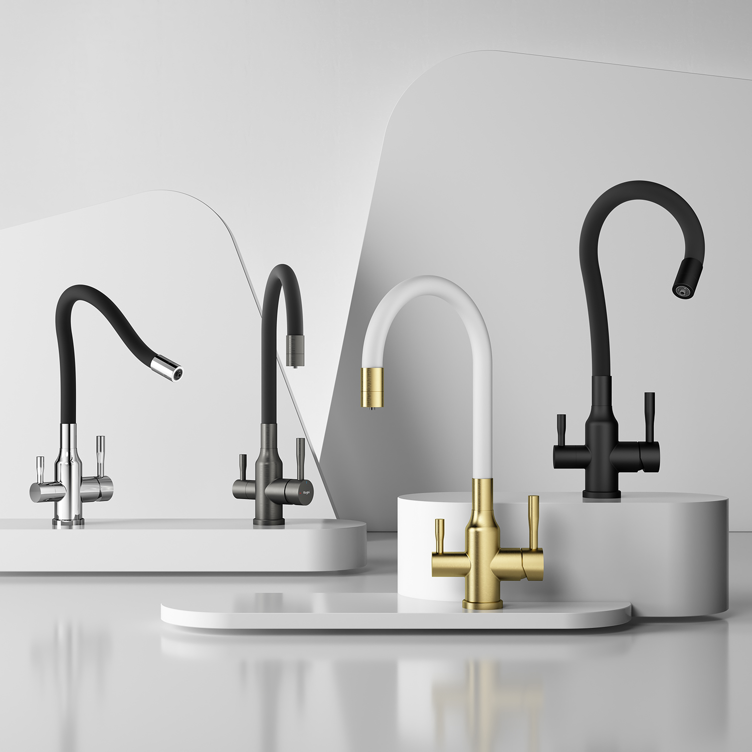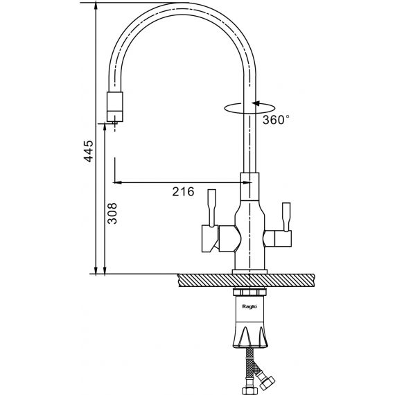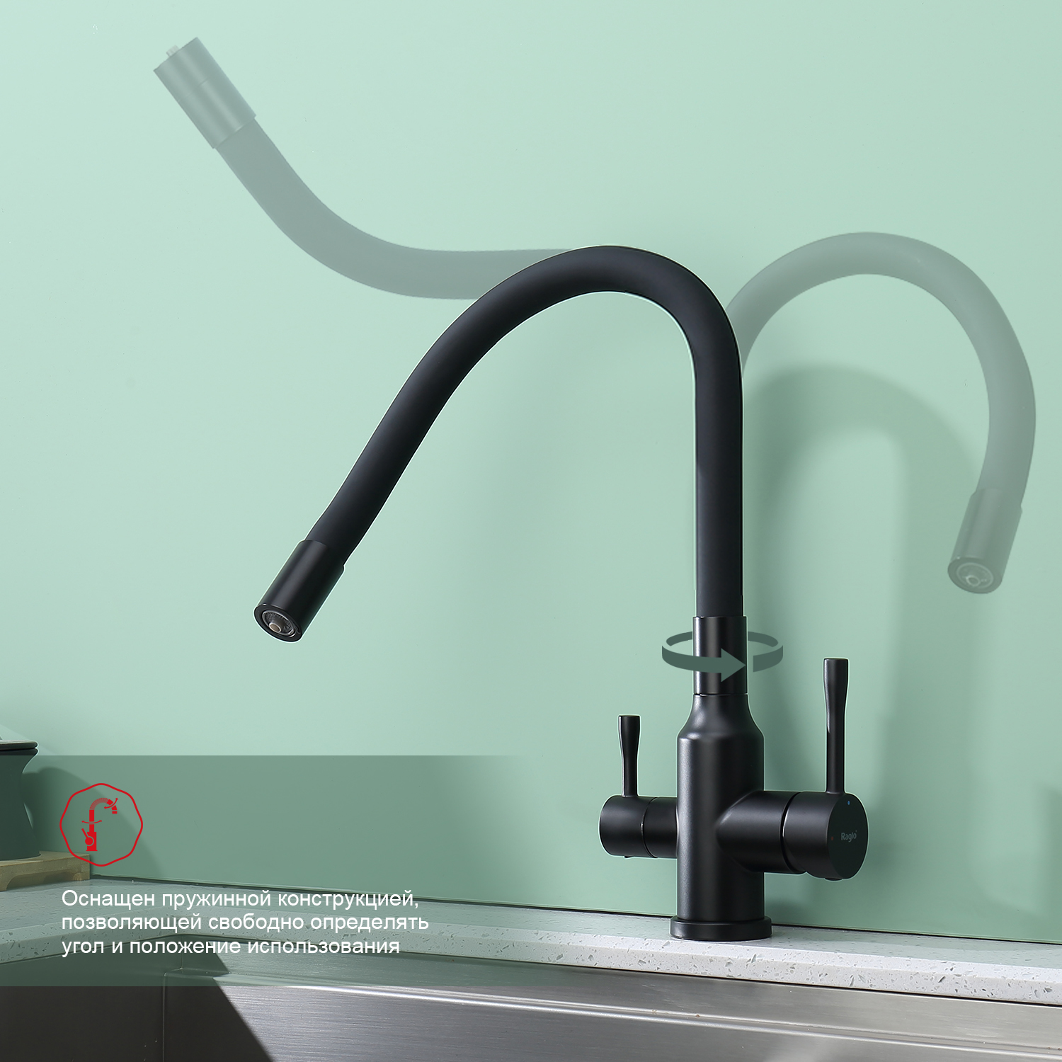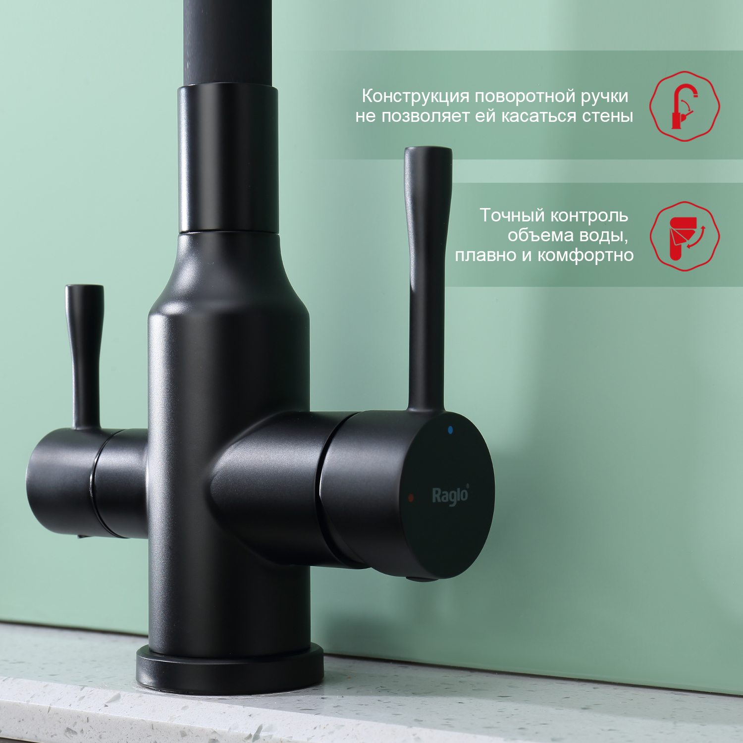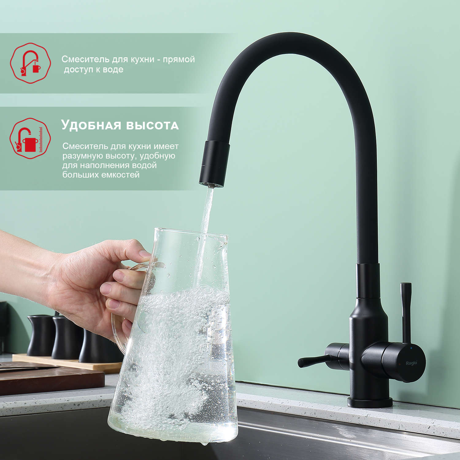 Смеситель для кухни Raglo R81.64.06 с подключением фильтра и гибким изливом, материал нержавеющая сталь, цвет чёрный.
