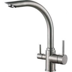 Смеситель для кухни Haiba HB70304 с подключением фильтра питьевой воды и поворотным изливом, материал - латунь, цвет - нержавеющая сталь.