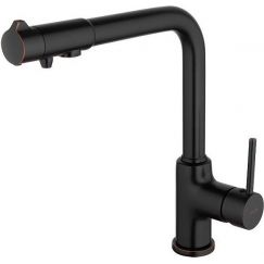 Смеситель для кухни Gappo G4398-1 с гибким, поворотным изливом и подключением фильтра питьевой воды , материал - латунь, цвет - черный/бронза.