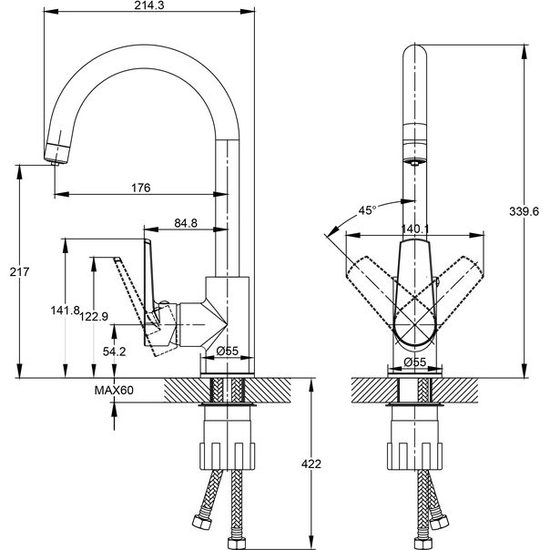 Смеситель для кухни Cersanit Moduo A68222 с подключением фильтра питьевой воды, высота излива 217 мм, материал латунь, цвет сатин.