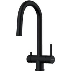 Смеситель для кухни Iddis Pure PURBLPFi05 с подключением фильтра и выдвижным, поворотным изливом, материал латунь, цвет черный матовый.