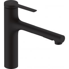 Смеситель для кухни Hansgrohe Zesis M33 74801670 с выдвижным и поворотным изливом, материал латунь, цвет чёрный матовый.