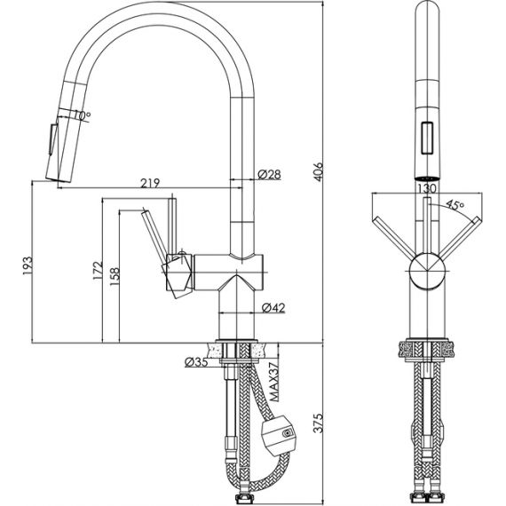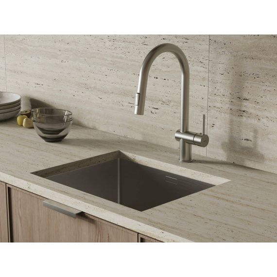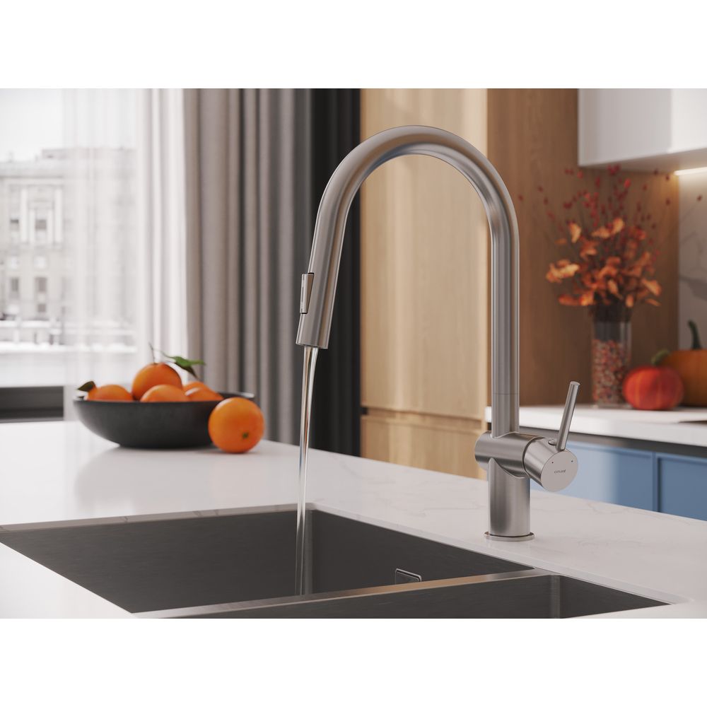 Смеситель для кухни Cersanit Brasko A68226 с выдвижным изливом, высота излива 193 мм, материал латунь, цвет сатин.