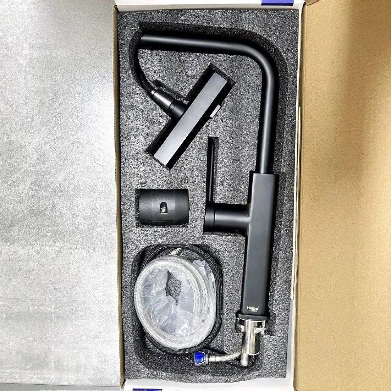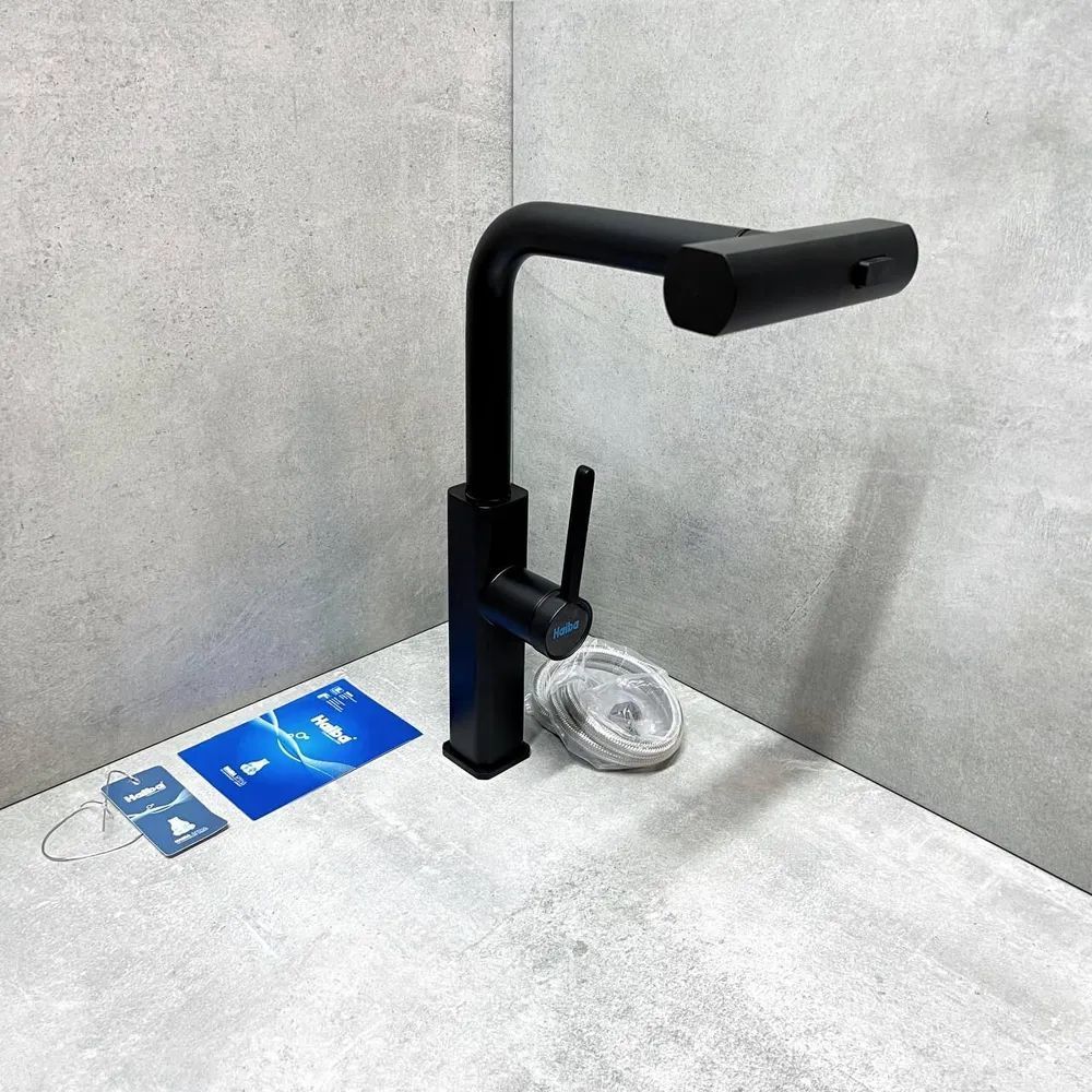 Смеситель для кухни с выдвижным изливом «Управляемый дождь» бренда Haiba изготовлен из высококачественной латуни, что обеспечивает прочность корпуса смесителя.