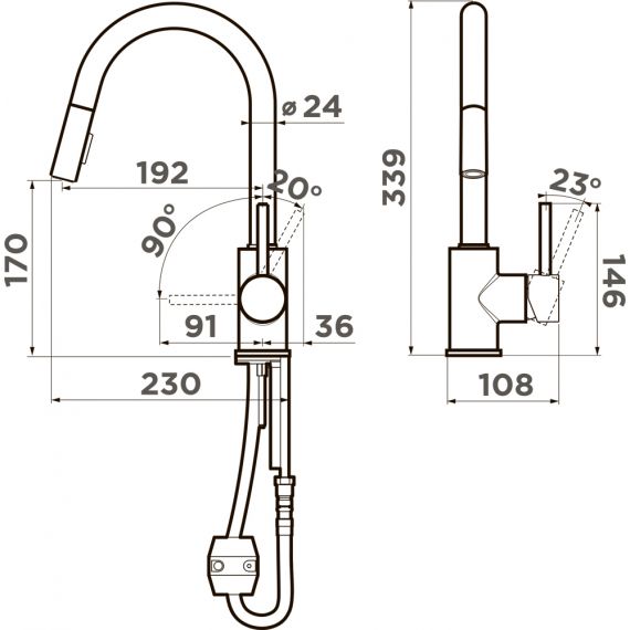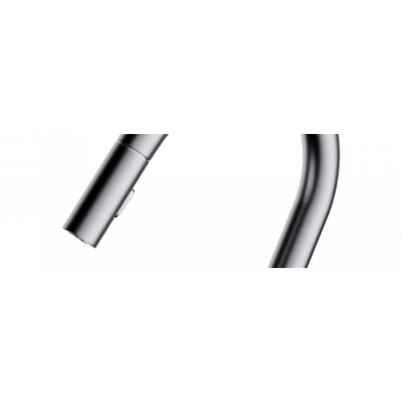 Практичный однорычажный смеситель выполнен в современном стиле и снабжен вытяжным шлангом;