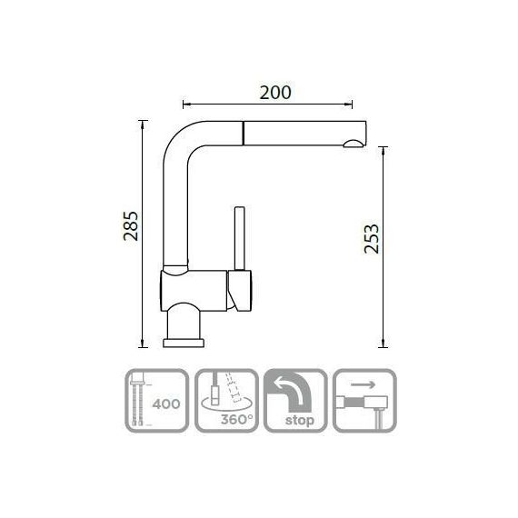 Смеситель для кухни Schock PIEGA-D с выдвижным изливом, высота излива 253 мм, материал - латунь, цвет - магма.