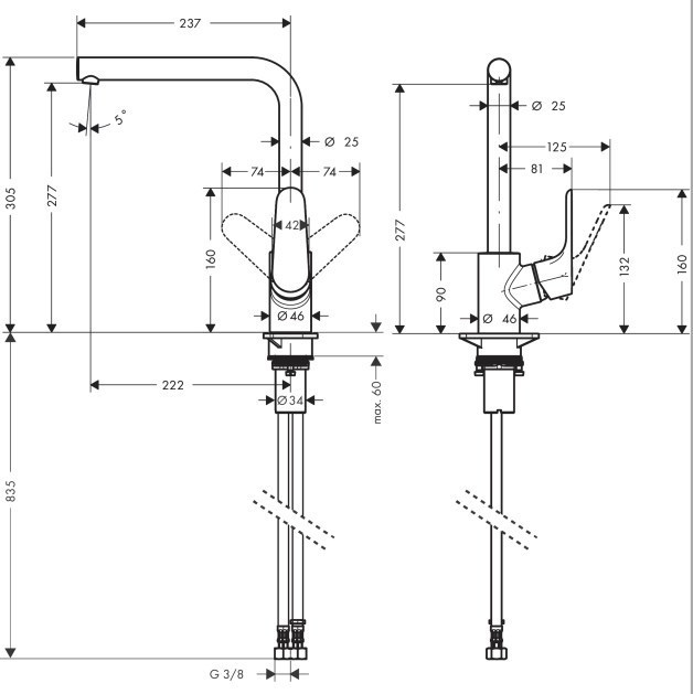 Смеситель для кухни Hansgrohe Focus 31817800, сталь