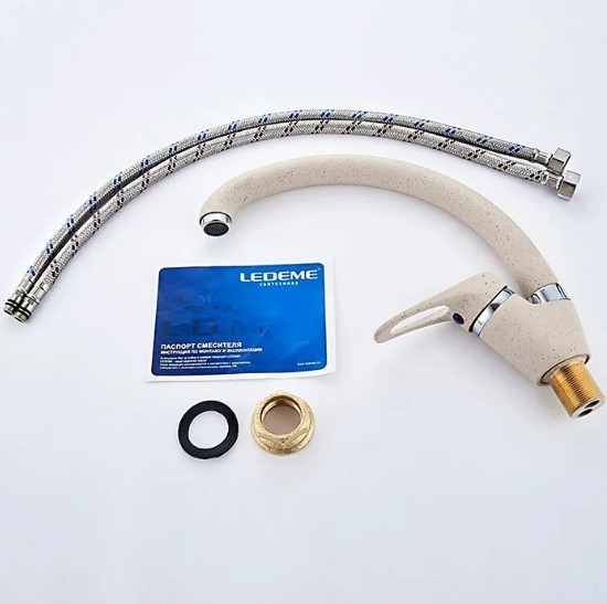 Смеситель для кухни Ledeme L5913K с поворотным изливом, материал - латунь, цвет - бежевый.