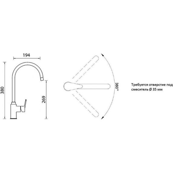 Смеситель для кухни Schock SIMI, высота излива 269 мм, материал - латунь, цвет - оникс.