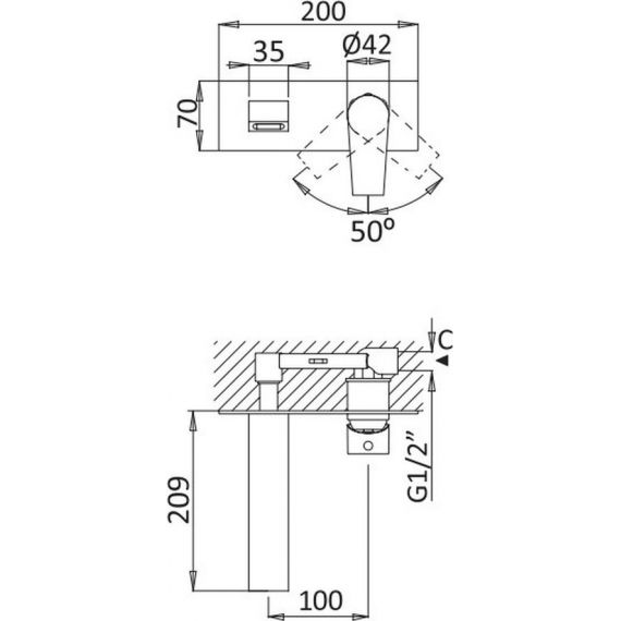 Смеситель для раковины настенный Cezares NAUTIC-BLI-NOP с донным клапаном, материал - латунь, цвет - черный матовый.