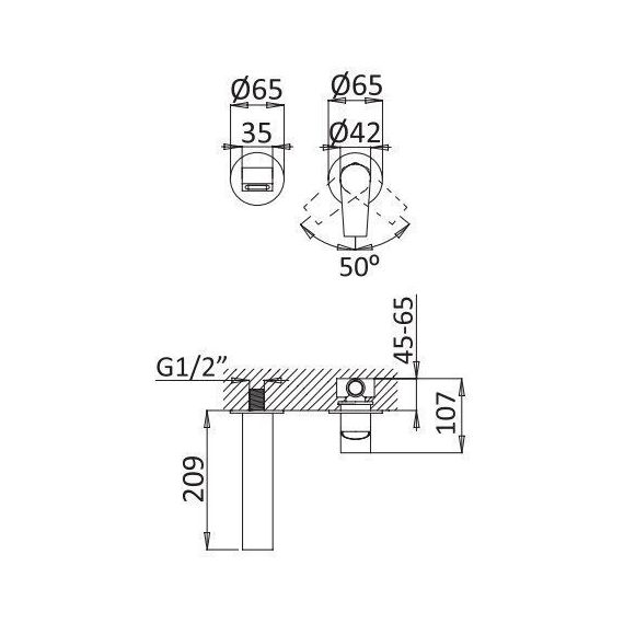 Тип подводки: внутренний (скрытый) монтаж 1/2"