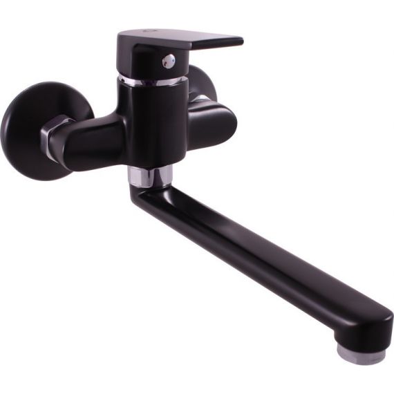 Смеситель для раковины настенный Rav-Slezak Colorado, с поворотным изливом - 200 мм, материал - латунь, цвет - черный матовый/хром.