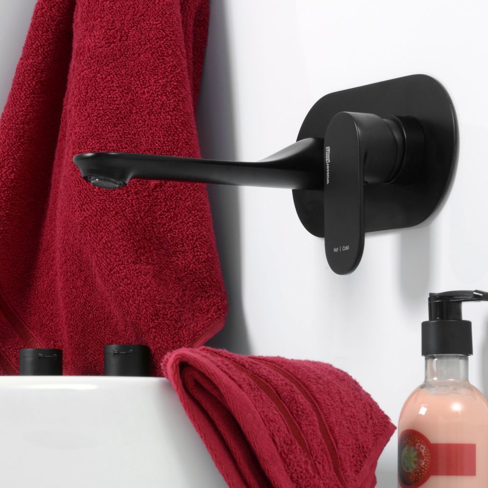 Смеситель для раковины настенный WasserKraft Elbe 7430, материал - латунь, покрытие - Soft-touch, цвет - чёрный.