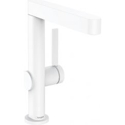 Смеситель для раковины Hansgrohe Finoris 76060700 с донным клапаном Push-Open и поворотным изливом, материал - латунь, цвет - белый матовый.