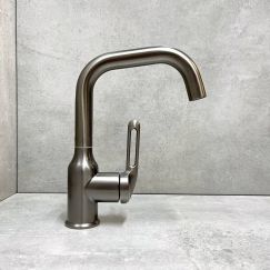 Смеситель для раковины Haiba HB45802 с поворотным изливом, материал - нержавеющая сталь, цвет - нержавеющая сталь.