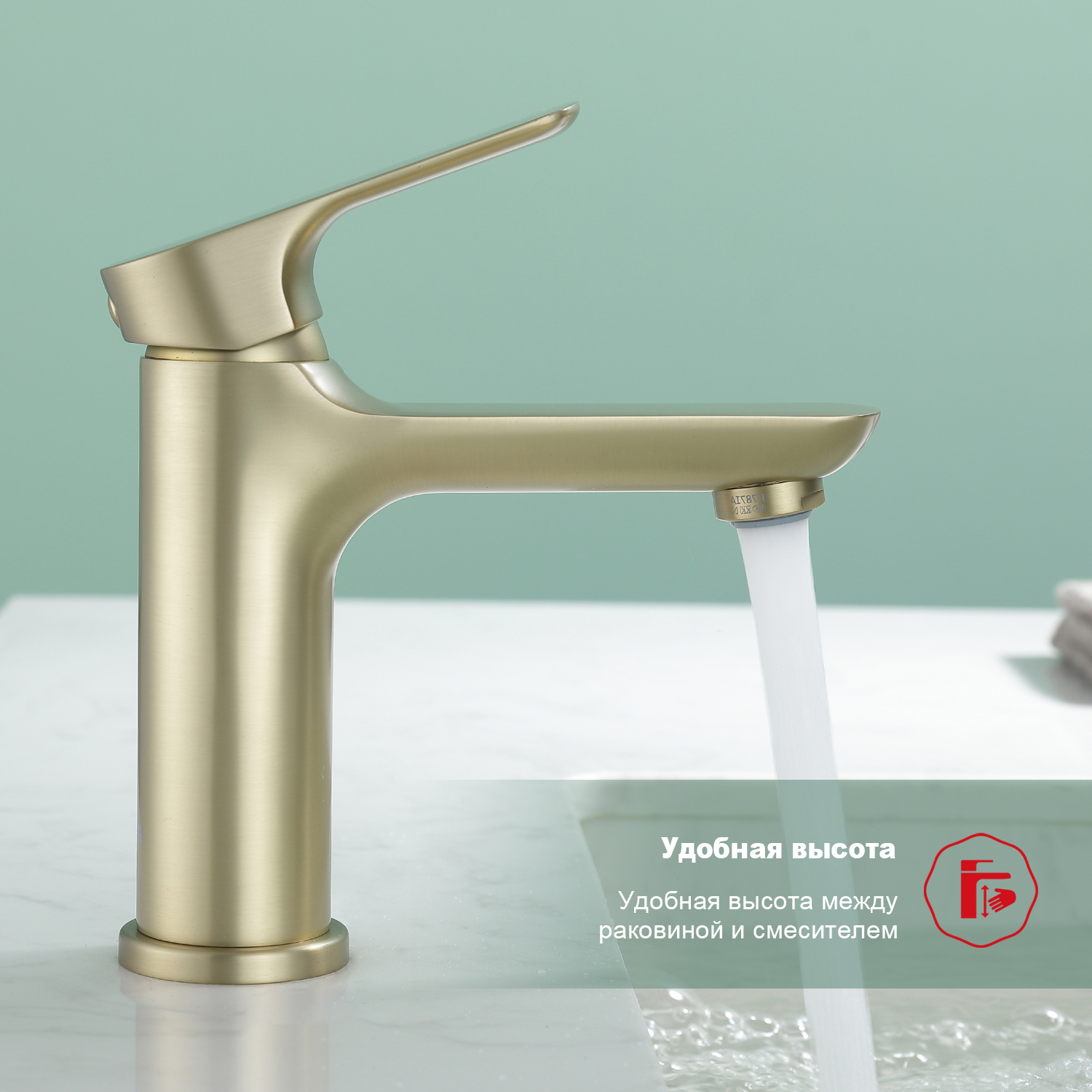 Смеситель для раковины Raglo R03.10.03, материал латунь, цвет золотой сатин.