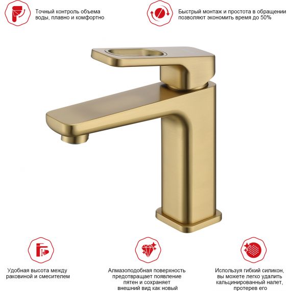 Смеситель для раковины Raglo R51.10.03, золотой сатин
