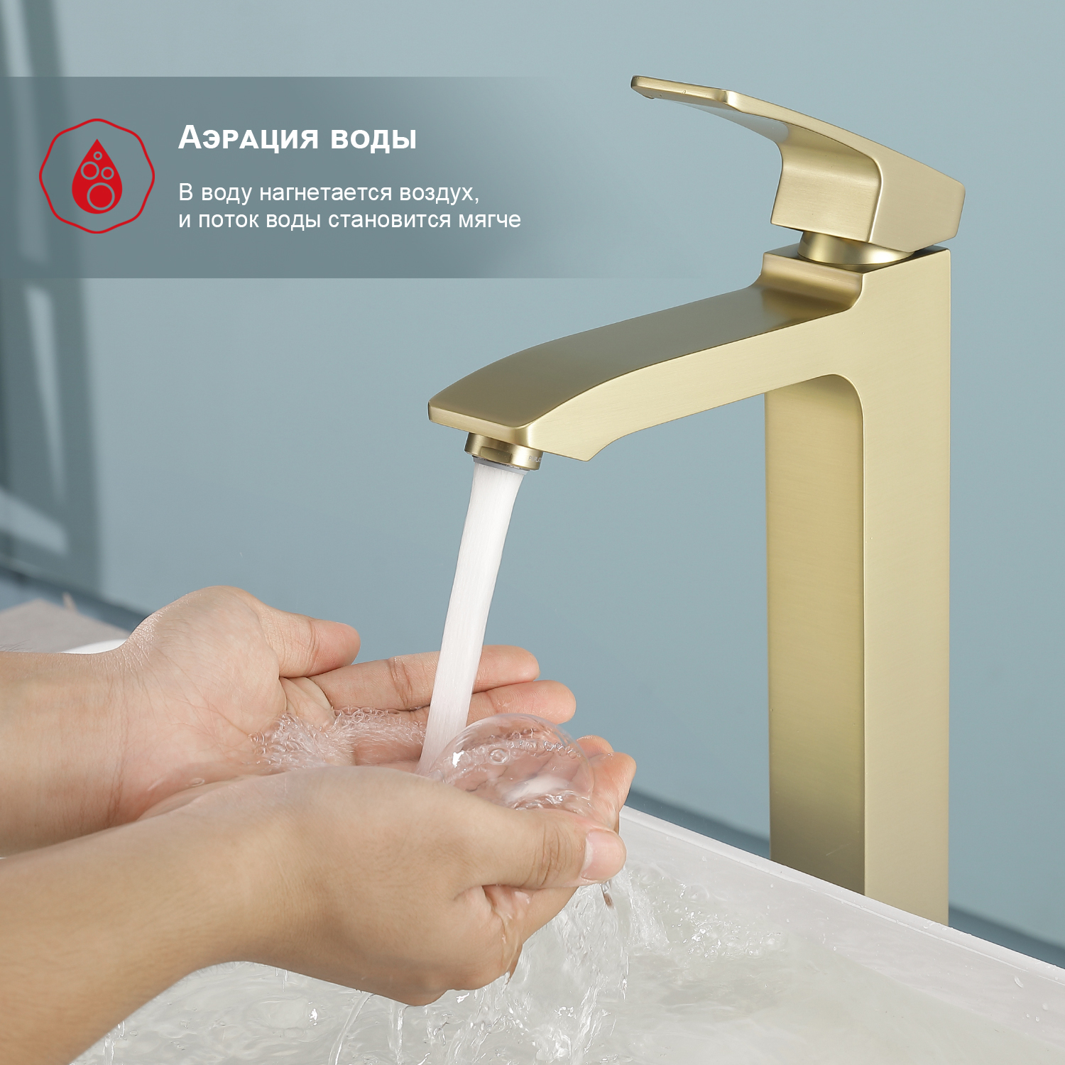 Смеситель для раковины высокий Raglo R01.15.03, золотой сатин
