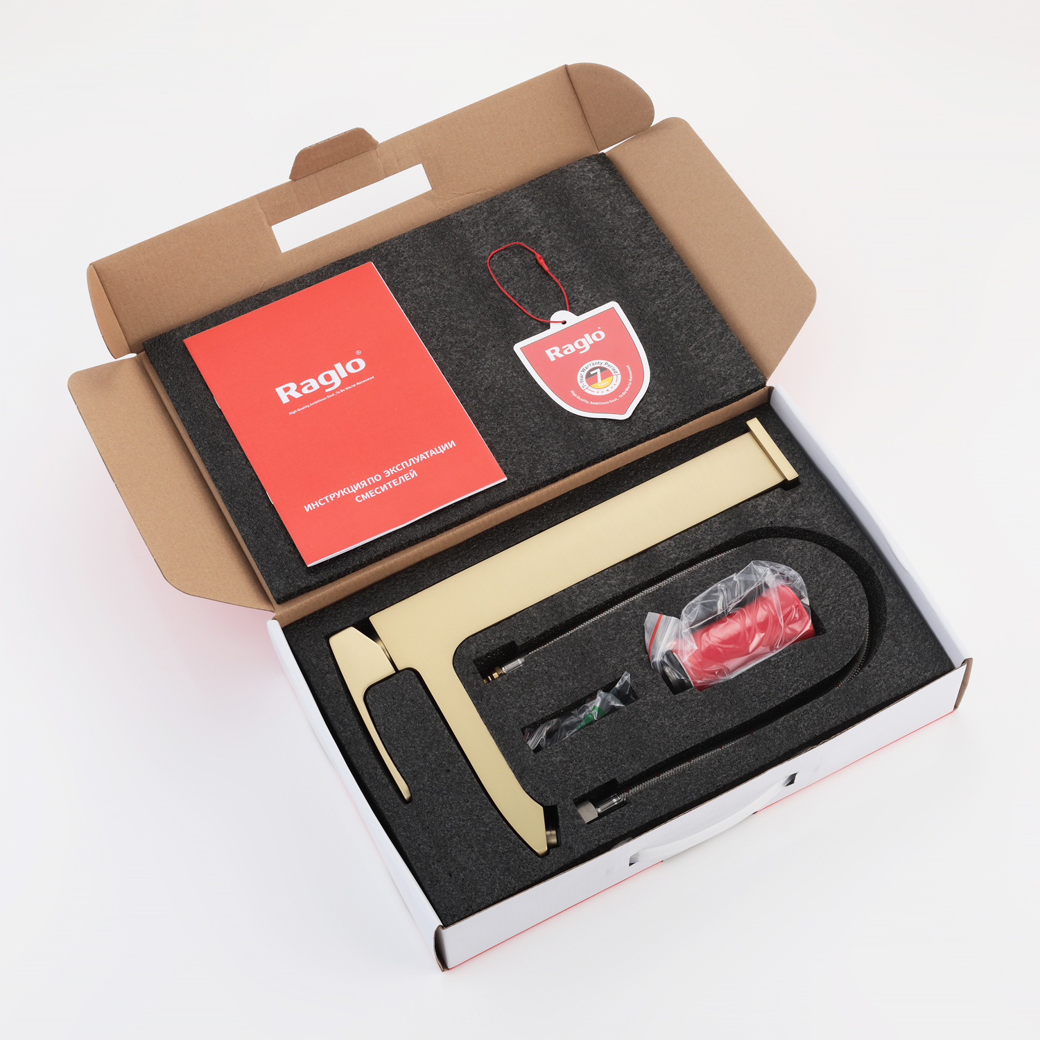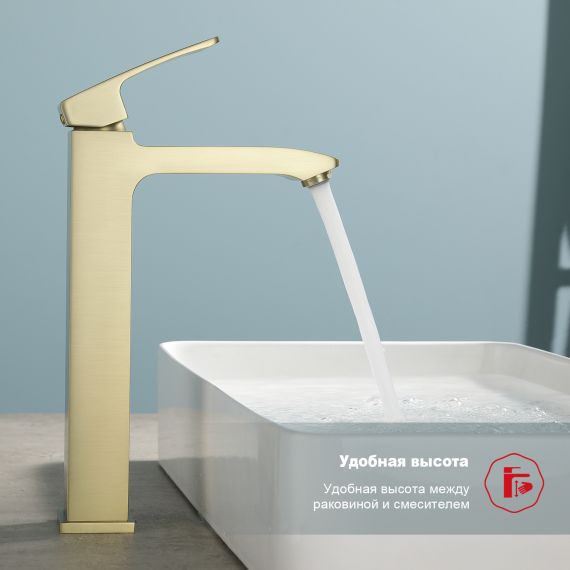 Смеситель для раковины высокий Raglo R01.15.03, материал латунь, цвет золотой сатин.