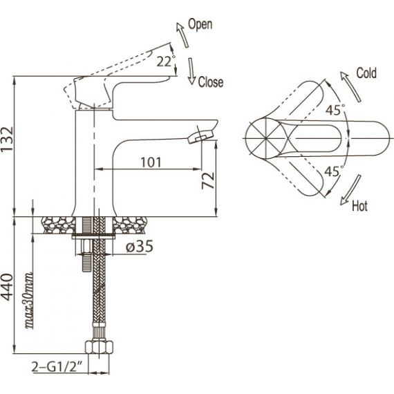 Диаметр посадочного места на раковину 2,5 см