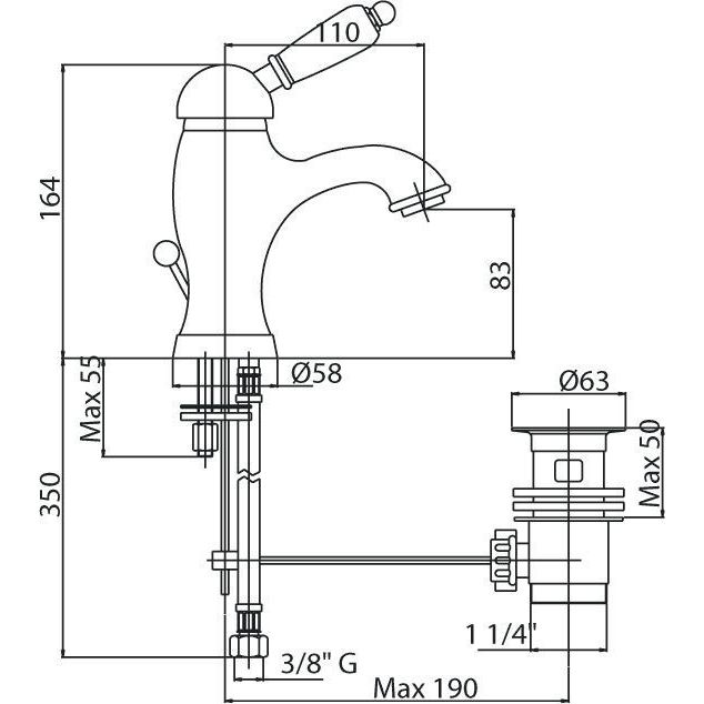 Смеситель для раковины Cezares ELITE-LSM1-01-M с донным клапаном, материал латунь, цвет хром.
