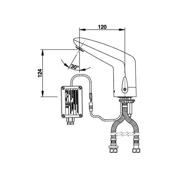 Автоматическое закрытие электроклапана после 30 сек. работы смесителя, а также в случае неисправности датчика (фотоэлемента) или износа аккумулятора/перебоя питания
