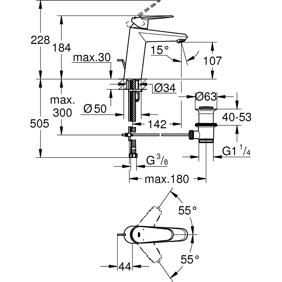 Смеситель для раковины Grohe Eurodisc Cosmopolitan 184 мм 23448002