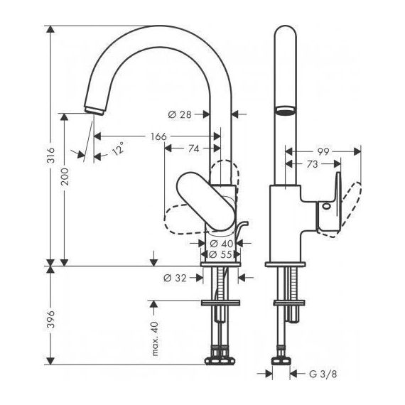 угол поворота излива: регулировка на 2 уровня на 120° или 360°
