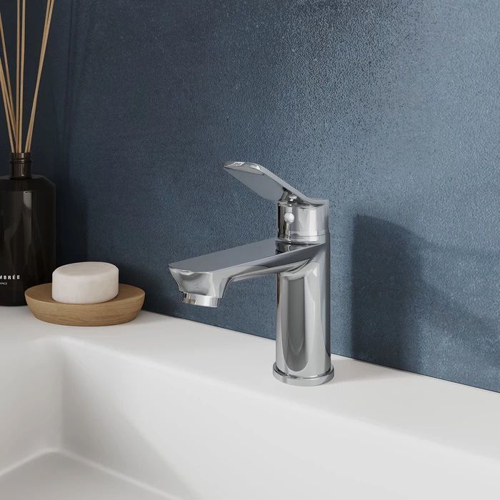 Смеситель для умывальника, однозахватный, латунь, никель-хромовое покрытие, керамический картридж 35 мм, пластиковый аэратор, пьедестал. В комплекте: гибкая подводка 35 см, комплект крепежа. Упаковка: картонная коробка, индивидуальный мешок.