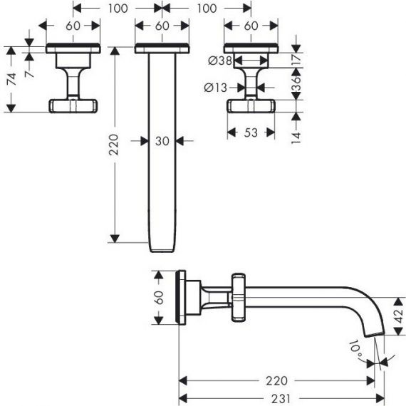 Смеситель для раковины настенный Axor Citterio E 36107000