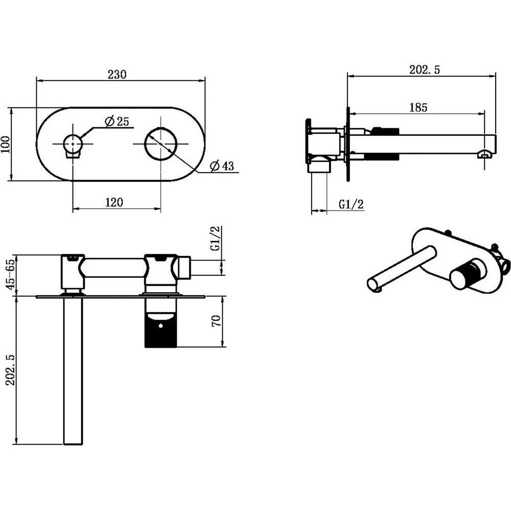 Смеситель для раковины настенный Boheme Stick со скрытой частью, материал латунь, цвет white chrome
