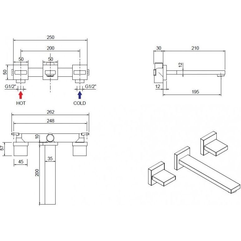 Отверстия для монтажа: 3 отверстия