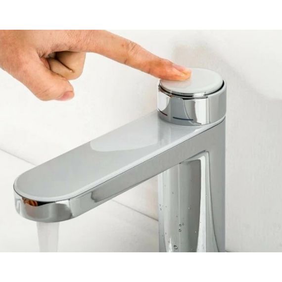 Кнопочный смеситель для умывальника Gappo G1095-1 оснащен цифровым дисплеем, который отображает температуру воды. Такой смеситель является порционным. Что дает возможность экономить расход воды. Механизм клик-лак, нажимается, выдает воду и потом сам перекрывает ток воды. Подходит для стерильных помещений, чтобы после мытья рук не касаться ручки. Корпус сделан из латуни и покрыт хромом. Прочный, надежный и нержавеющий. Устанавливается на раковину.