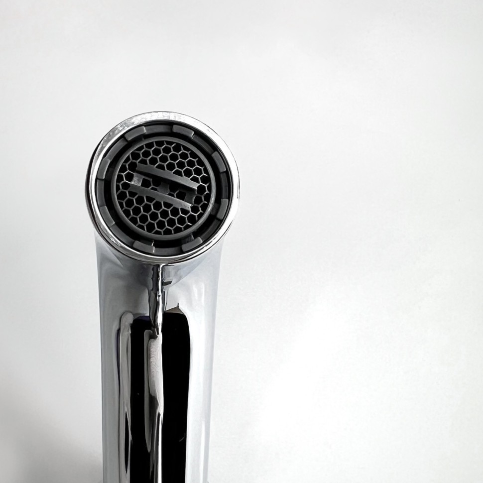 Аэратор Neoperl насыщает струю кислородом, увеличивает напор, экономя воду. Сеточка очищается пальцем. Nuovo Galatron - керамический картридж, обеспечивающий долгую службу смесителя.