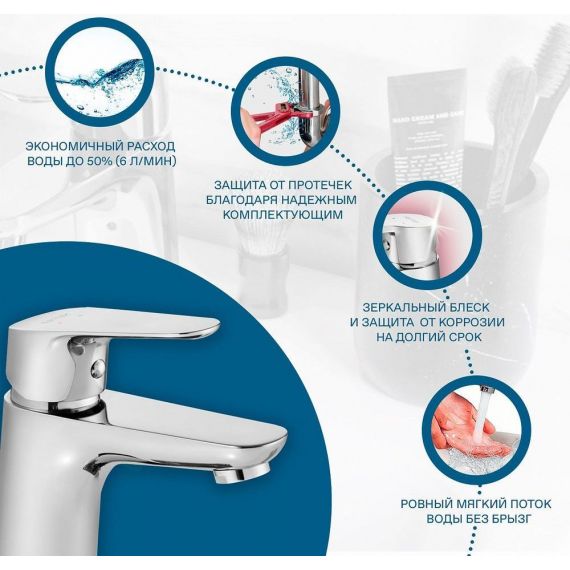 ровный и мягкий поток без брызг за счет насыщения струи воды воздухом