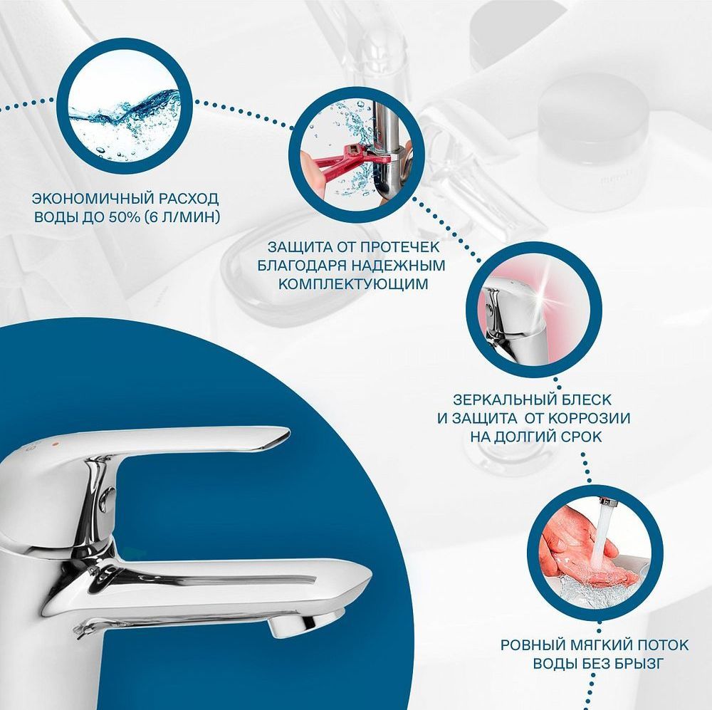 ровный и мягкий поток без брызг за счет насыщения струи воды воздухом