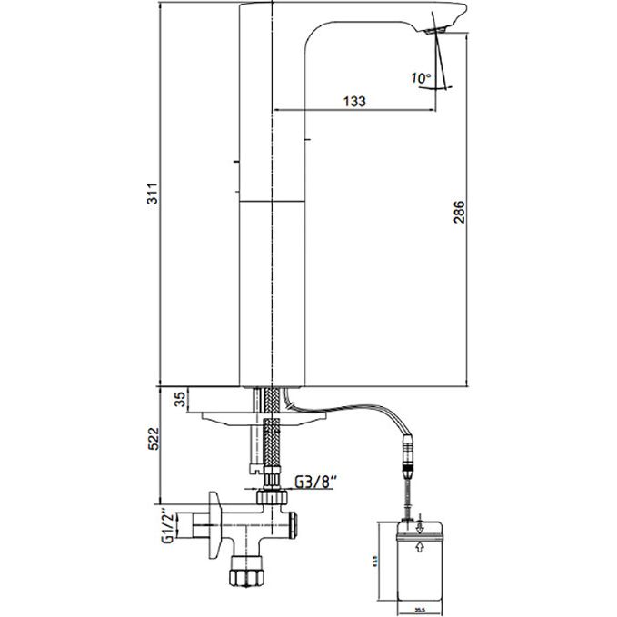 Смеситель для раковины высокий электронный E.C.A. 108108036EX