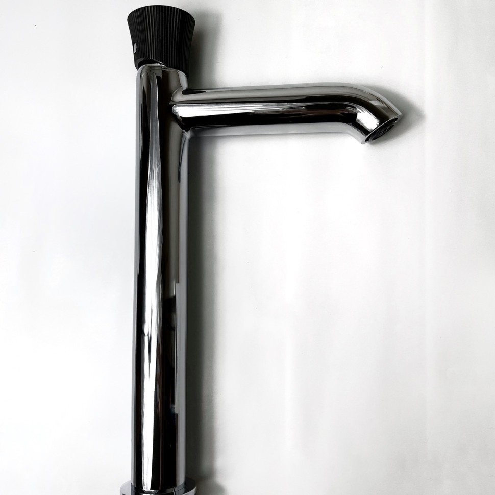 Увеличенная высота корпуса смесителя позволяет использовать его с накладными раковинами и раковинами-чашами.