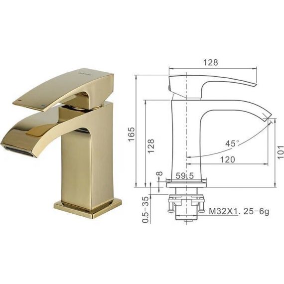 Смеситель для раковины Gappo G1007-3, материал - латунь, цвет - золото.