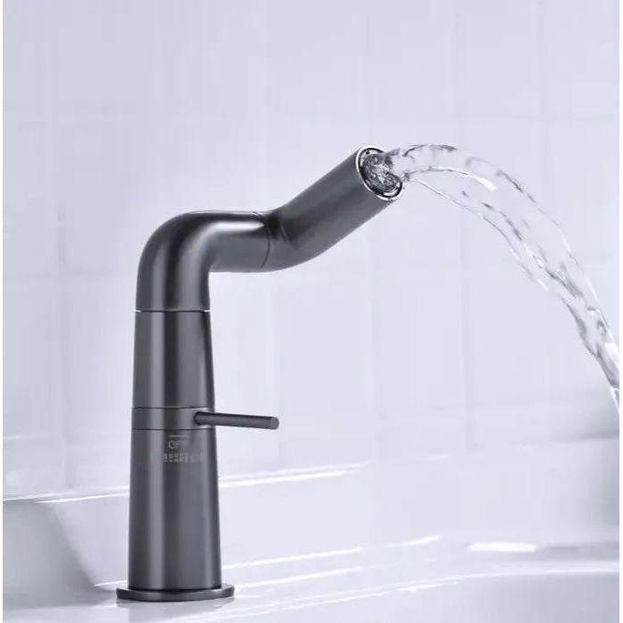 Смеситель для раковины Haiba HB10813-3 с поворотным изливом, материал латунь, цвет графит.