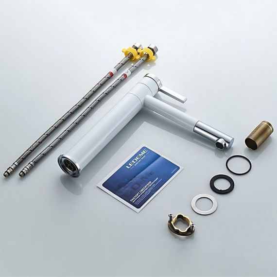 Смеситель для раковины высокий Ledeme L1152-2, белый/хром