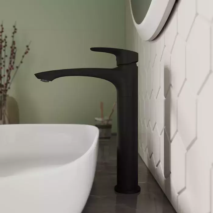 Смеситель для раковины высокий Milardo Rora RORBL01M01, чёрный матовый