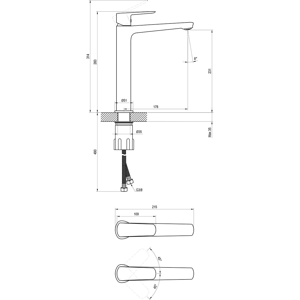 соединительные шланги: гибкие 450 мм, диаметр G3/8