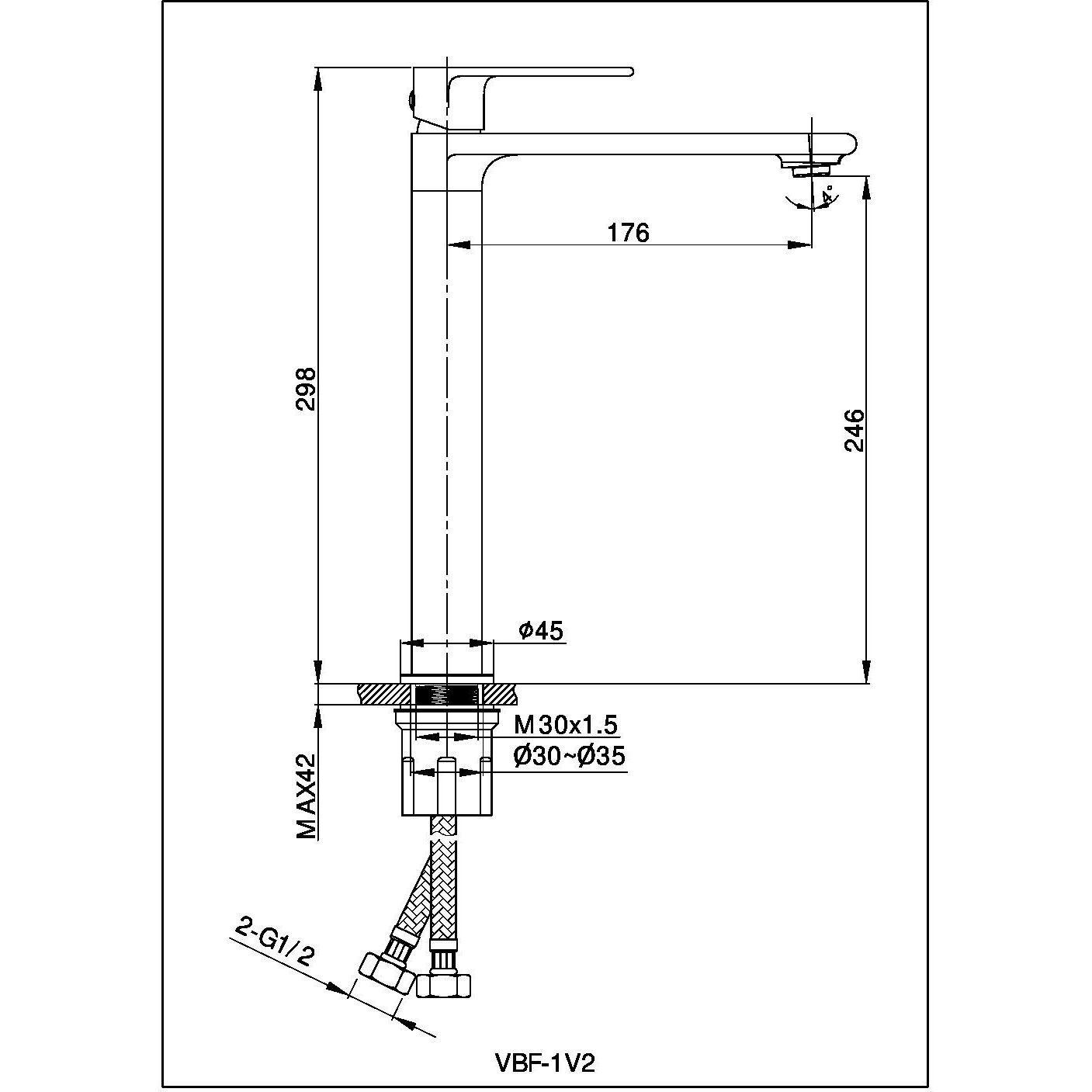 Смеситель для раковины высокий Vincea Vogue VBF-1V2GM, материал - латунь, цвет - вороненая сталь.