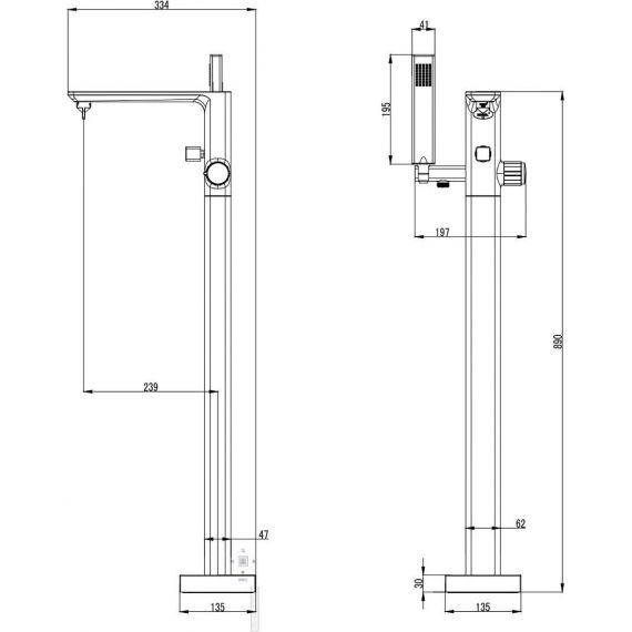 Смеситель для ванны Azario Piano AZ-208260AB5PA-0308A с душевым гарнитуром, материал - латунь, цвет - черный.