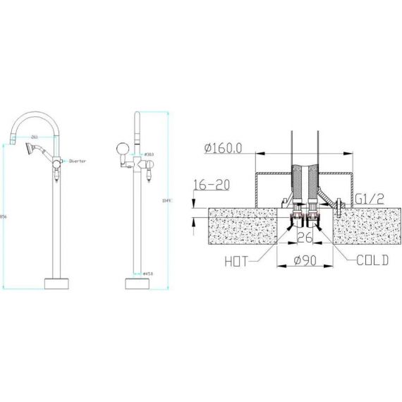 Смеситель для ванны напольный Boheme Imperiale с душевым гарнитуром, материал латунь, цвет золото
