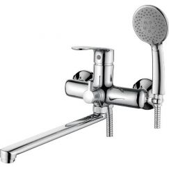 Смеситель для ванны Lemark Benefit LM2512C с длинным излмвом 350 мм и душевым гарнитуром, материал латунь, цвет хром.