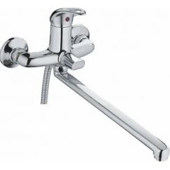 Смеситель для ванны Haiba HB22589 с душевым гарнитуром и длинным изливом, переключатель в корпусе. Материал - латунь, цвет - хром.