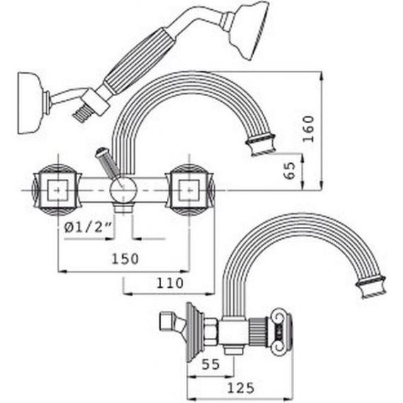 Смеситель для ванны Cezares APHRODITE-V-02-S1, бронза